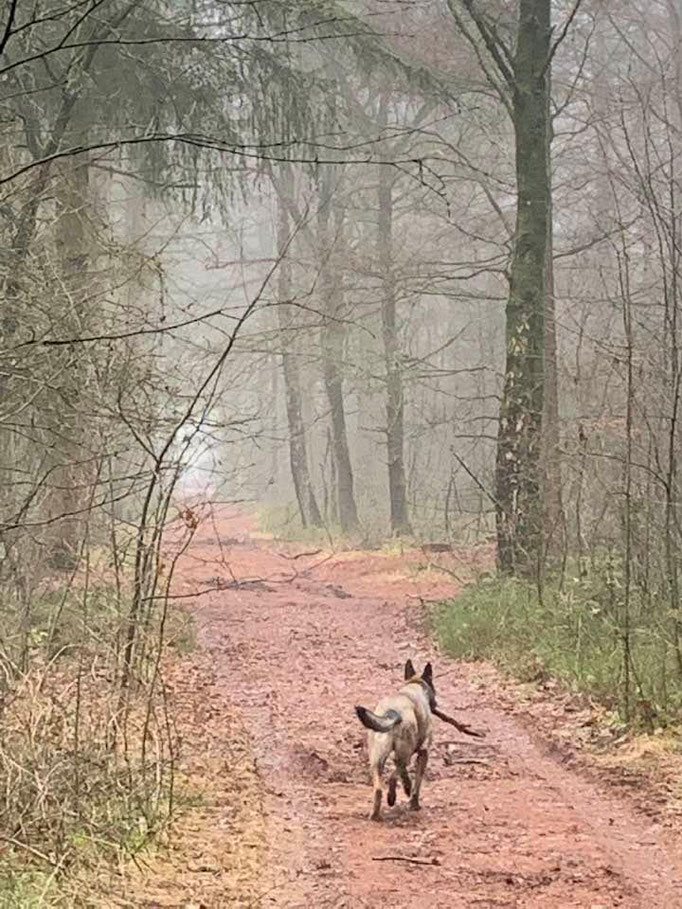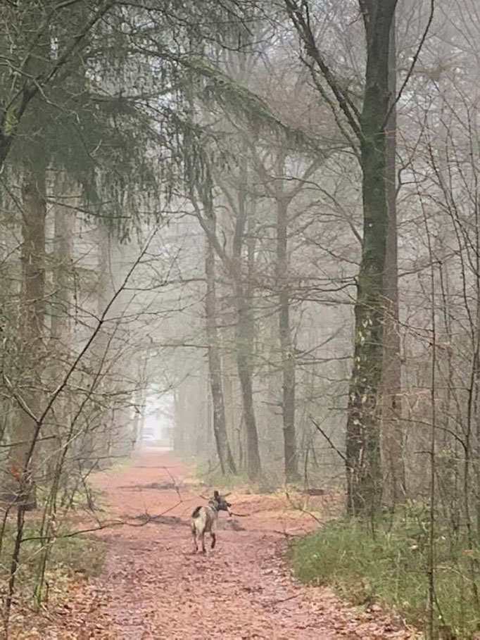Über den Mittag gehe ich etwas länger laufen mit Sandor. Wir nehmen den Weg ins Roekelse Bos unter die Füsse und Pfoten und sobald wir im Wald sind, umfängt uns wohltuende Stille. Der Nebel dringt auch durch den Wald und verleiht der ganzen Szenerie eine mystische Stimmung. Wunderschön! Ganz im Sinne der Erkenntnis von heute Morgen geniesse ich den Augenblick. Zwar erlaube ich mir kurz, ein paar Fotos zu machen, denn die Stimmung ist speziell und ich möchte sie gerne festhalten. Danach bin ich im Hier und Jetzt und nehme die Ruhe des Waldes sowie die Kraft der Umgebung auf. Wir sind fast 2 Stunden unterwegs und danach fühle ich mich ruhig und aufgetankt. Trotz dem Wissen, dass auch in diesem Augenblick in der Tier- und Menschenwelt viel Elend und Leid herrscht. Ich erlaube mir, glücklich zu sein und bin dankbar für diese wunderbaren mystischen Momente und die Erkenntnis.