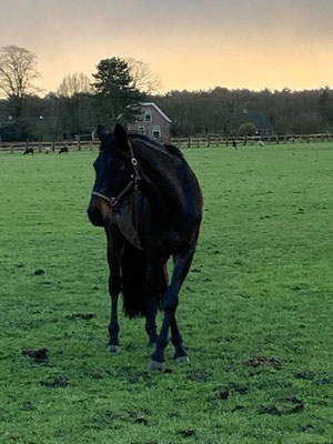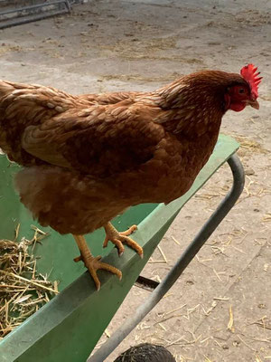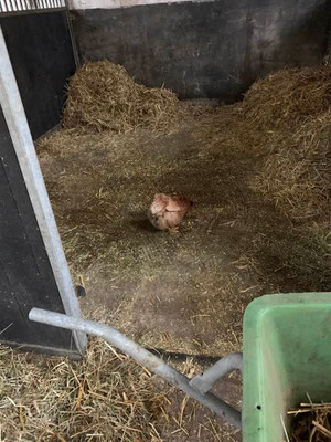Heute ist alles ein bisschen anders … Das Wetter zum Beispiel. Es ist kalt, und wir erleben heute von Sonnenschein, Regen über Hagel so ziemlich alles. Am Abend ist das Licht extrem schön und leider verpasse ich es, den wunderbaren Regenbogen zu fotografieren. Er war wirklich eindrücklich. Aber beginnen wir am Morgen: da es hagelt, ziehe ich Dark die Decke an für die Weide. Kaum ist er auf der Weide, drückt die Sonne durch, also mache ich mich auf, die Decke abzuziehen. Bis ich Dark am Ende der Weide erreiche, verfolgt und gejagt von den Schafen (die haben sich noch nie für mich interessiert, lustig dass sie es heute tun), fängt es allerdings wieder an zu regnen und ich lasse die Decke drauf. Ok, ich bin bewegt 😊, nun noch die Boxe misten. Da erhalte ich Unterstützung vom Hofhuhn, es ist einfach so herzig. Natürlich will es die Bollen zerpicken, trotzdem finde ich es süss, wie es langsam offenbar immer weniger Angst vor mir hat.