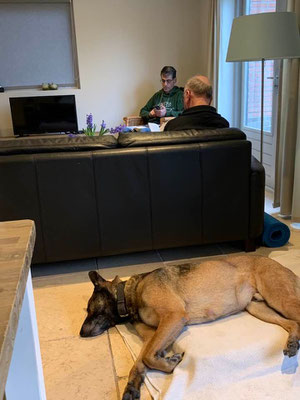 Nach einem ausgiebigen und gemütlichen Frühstück zeige ich den beiden Jungs (Pa und Antonio) den Hof. Die Sightseeing-Tour wird ab und zu unterbrochen durch einen Schwatz mit Willemiek, gut ist mein Pa so neugierig und stellt dauernd Fragen, so lerne ich auch noch einiges Neues kennen vom Hof. Die Tour um den Hof dauert ziemlich lange und wir gönnen uns danach eine kurze Kaffeepause, dann zeige ich den beiden den Wald «rechts», der beim Feriendorf. Wir bewundern die modernen Tiny-Häuser und Pa läuft dann noch ein bisschen für sich herum, während Antonio und ich uns mit Sandor in den Wald für einen längeren Spaziergang aufmachen. Wir geniessen den Wald, die Ruhe und die schöne Umgebung, und als wir nach einer Stunde wieder zurück sind, finden wir Pa nirgends. Er ist schon mal nach Hause gelaufen und sitzt gemütlich auf dem Sofa mit seinen Buch 😊. Wow, da ist er aber weit gelaufen, richtig toll!