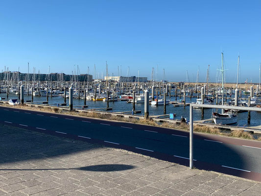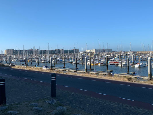 In Ijmuiden angekommen, werden wir von rauchenden Schloten riesiger Fabriken am Industriehafen begrüsst. Ähm ja, das war jetzt nicht das, was ich suchte, aber ja, gehört auch dazu, wenn irgendwo ein grosser Hafen ist. Ich folge deshalb den Schildern «Jijmuiden an Zee» und komme schlussendlich zum riesigen Parkplatz am Yachthafen. Ja genau, so langsam kommen die Erinnerungen wieder an diesen Hafen, wir mussten damals ja einige Tage hier verbringen, weil wir aufgrund zu hoher See nicht auslaufen konnten.