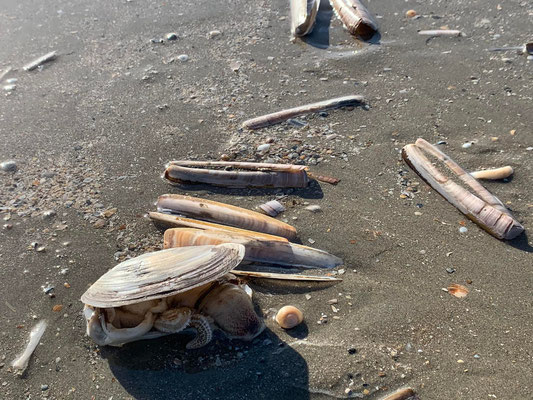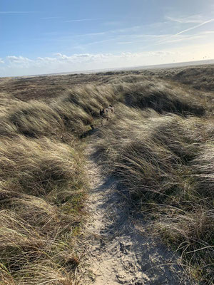 Nach 2 Stunden rumlaufen auf dem Strand und in den Dünen gehen wir zurück zum Auto. Die Gastronomie hat hier noch nicht geöffnet. Da es erst Spätnachmittag ist, schaue ich, wo ich noch an einen anderen Strand gehen könnte und suche mir den Strand von Bloemendaal an Zee aus. Das Navi schickt mich durch die 30kmh-Zone und über gefühlt 1000 Bumbs, das nervt etwas. Aber gut, endlich dort angekommen, macht es mich ehrlich gesagt nicht gross an, auszusteigen und auf dem Strand laufen zu gehen. Der Strandabschnitt von dort aus bis Zandvoort erinnert mich ein bisschen an Rimini: Meer, Strand, Touristrasse mit Buden, dahinter Hotelkomplexe oder zumindest grosse Ferienhaussiedlungen und natürlich Campings ohne Ende. Ich überlege kurz, bei einer Frittenbude anzuhalten aber ne, Hunger hab ich keinen und mir ist immer noch nicht so wohl.