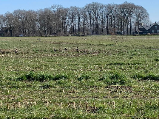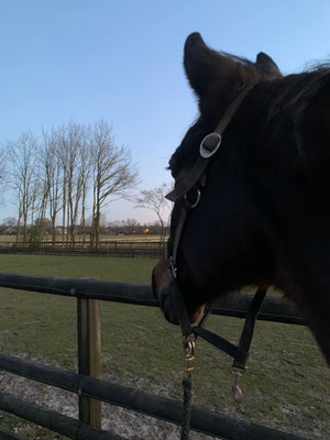 Auch heute wieder schönstes Wetter und eigentlich würde ich sehr gerne nochmals ans Meer, leider habe ich am Nachmittag zwei BC’s, das reicht dann zeitlich nicht zum hin- und herfahren. Den beiden Patienten scheint es soweit gut zu gehen, und deshalb gehe ich über den Mittag etwas länger mit Sandor raus, wieder mal in den Wald links, also ins Roekele Bos. Dort, wo ich mit Dark ausreiten war, jedenfalls ein Stück weit. Ich laufe bis zum Tor und sehe, dass dort immer noch Fell von Dark hängt … und war mir weiter auffällt: die Niederländer sind fast alle schon in ihren Gärten und mähen den Rasen! Leute, es ist noch gefroren nachts und grad mal Anfang März … naja, so sind sie, Hauptsache alles schön «gepützerlet».