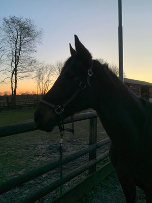 Wir laufen entlang der Weiden von Dark zurück und ich sehe, dass er entspannt die Sonne geniesst. Wie schön, und auch die Wunde sieht sehr gut verheilt aus. Am Abend nehme ich ihn noch kurz raus und longiere ihn, einfach um zu schauen, ob er auch wirklich nicht humpelt. Nein, er geht gerade und gut vorwärts, sehr gut. Da reite ich ihn morgen zum Abschied dann sicher nochmals, darauf freue ich mich.