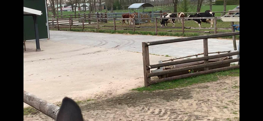 vernachlässigt und sind alle lahm. Von ein wenig bis extrem lahm. Es hat auch Kälber darunter und Dark findet diese Kuhherde ziemlich spooky. Mit viel Warten und Gucken lassen gewöhnt er sich