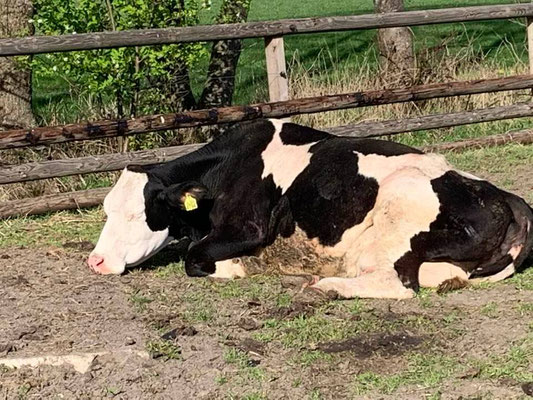 Kühe. Ich stehe eine ganze Weile am Kuhweidenzaun und staune wirklich sehr ab diesen tapferen Tieren. Die meisten von ihnen können kaum auf drei Beinen stehen, der Stier zum Beispiel kann eines