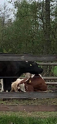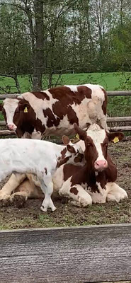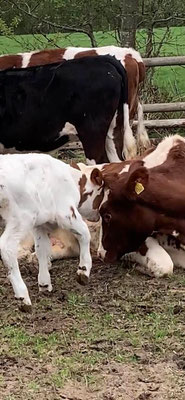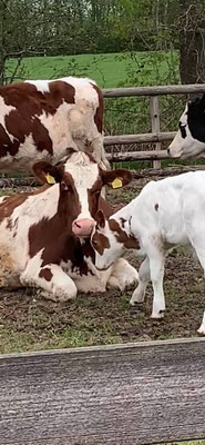 ständig auf ihren Müttern rumgetanzt sind. Nach einer Weile kommt der grosse schwarze Stier, jagt den Kleinen weg und beginnt, die Mutter abzulecken, wie herzig! Der Kleine versucht es noch ein