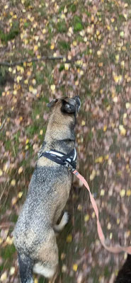 Da das Wetterapp heute am Morgen zuerst noch sonnig, dann allerdings ab dem Nachmittag Regen anzeigt, gehe ich mit Sandor und Pablo über den Mittag laufen. Der Wald glitzert, noch verzaubert von den Regentropfen, und Pablo läuft auch ganz gut. Es scheint, als ob ihm die Ausflüge in den Wald Spass machen, obwohl er ständig wieder in sein Headsheaking fällt (nervöse Störung, wobei er sehr unkontrolliert mit dem Kopf zuckt).