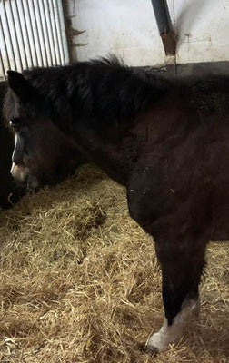 um seine Boxe zu misten und stelle ihn wieder in die Boxe, also neben Lucky. Ich getraue mich nicht, ihn beim Heu- und Strohdepot frei rumlaufen zu lassen, da er das letzte Mal dort ziemliches