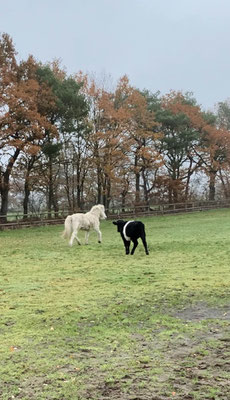 Zur Absicherung schreibe ich heute Willemiek, wo sie die Ponys gerne hätte und sie meint, im Laufstall sei ok. Ich freue mich natürlich darüber, denn hier kann Teddy nicht ans Gras und hat Heu zum Mampfen, anstatt einfach den ganzen Tag doof auf dem Viereck rumstehen zu müssen.
