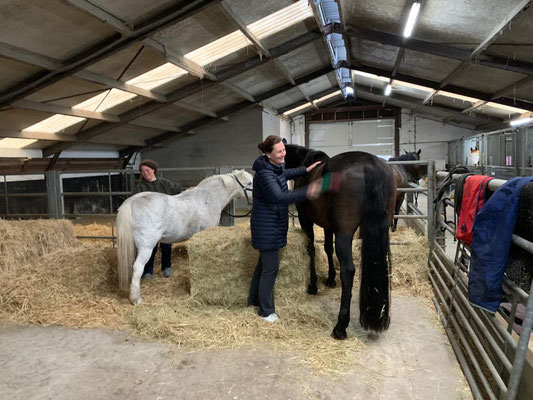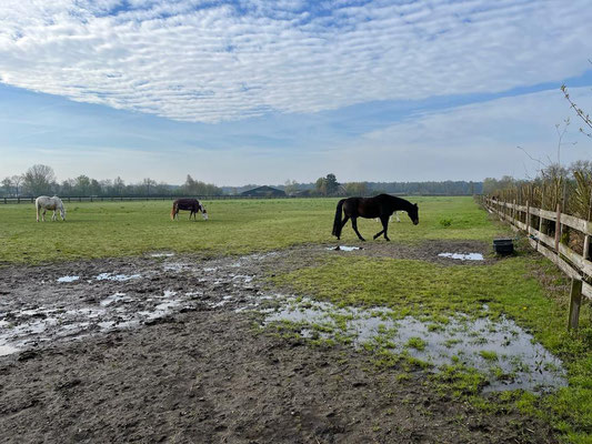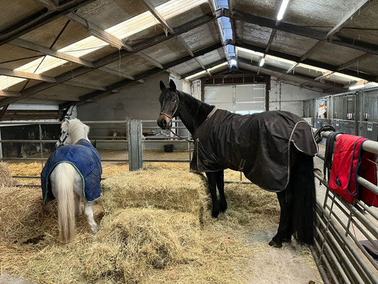 Oh mei, heute ist so richtig nasses, grusiges Regenwetter. Es schüttet aus Kübeln und deshalb kriegen die Pferde heute alle eine Decke drauf, denn am Nachmittag ist dann auch noch kalter Wind angesagt. Alena und Tanja helfen mir beim Putzen und Decken und Rausbringen der Pferde, da bin ich froh, so werde ich nur halb so nass.