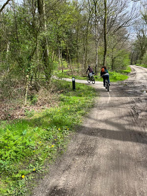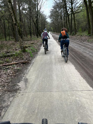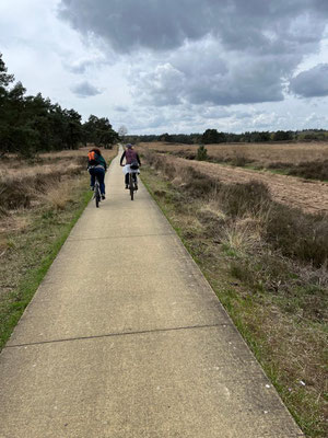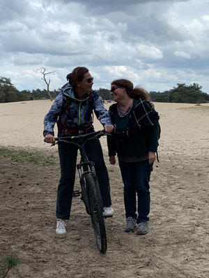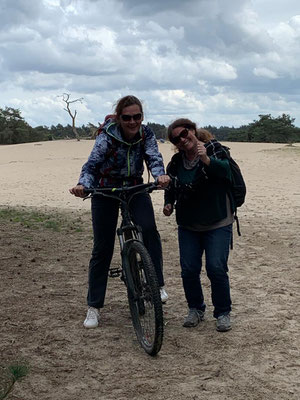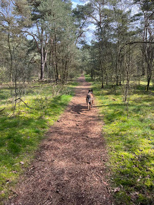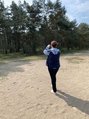 Über den Mittag mache ich wie immer den Mittagsspaziergang mit Sandor, und jedes Mal begleitet mich Alena. Ich zeige ihr den "Zauberwald" hinter dem Vakantiepark Berkenrhode, und sie fötelet ständig. Irgendwie verstehe ich ja, dass sie gerne Erinnerungen mitnehmen möchte, aber muss man wirklich jeden Baum, jeden Stein und jedes Sandkorn fötelen ... ???