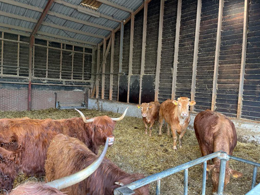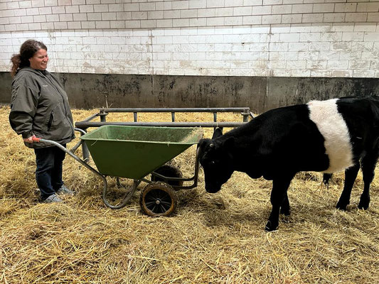 Meine Besucherinnen sind Frühaufsteherinnen, und so treffen wir uns bereits um 08.00 nach der Hunde- und ersten Stallrunde zum Kaffee und Zmorge. Danach zeige ich ihnen den Hof und alle Tiere, die fleissig gefötelet werden. Und dann geht es an die Arbeit, die beiden helfen mir beim Rausführen der Pferde und Misten.