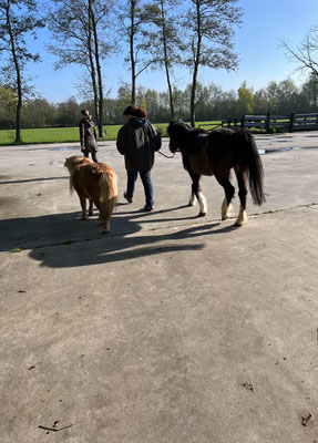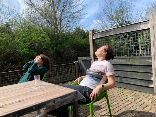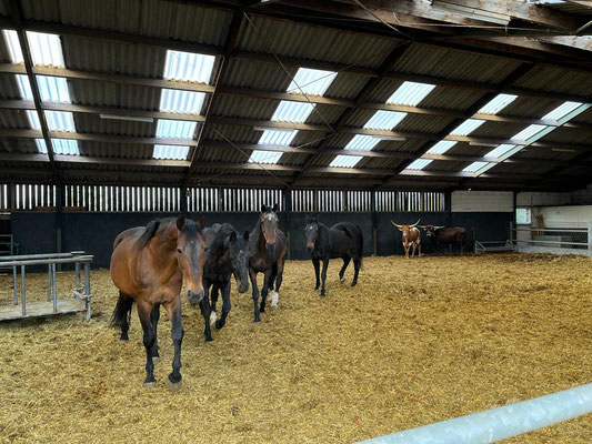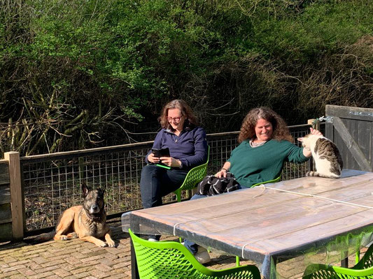 Der Ablauf am Morgen ist derselbe, Treff zum Frühstück gleich nach der Morgenrunde um 8 Uhr, dann Pferde rausbringen, misten und einen Moment die Sonne auf der Terrasse geniessen. Danach Mittagsspaziergang mit Sandor und Alena.