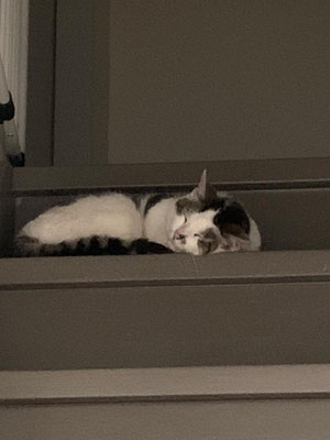 Den Abend geniessen wir, Sandor und ich, dann gemütlich vor dem Fernseher bei Let's Dance. Die Katze hat übrigens ein neues Plätzli gefunden, sie schläft jetzt auf der Treppe.