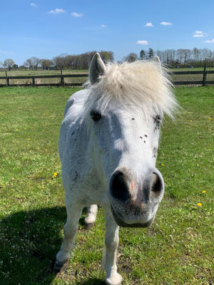 Statt dem Mittagsspaziergang habe ich mir jetzt angewöhnt, zuerst zu den Pferden und Lucky auf die Weide zu gehen, schnell Hallo zu sagen und zu schauen, ob alles gut ist. Lucky kommt mir immer entgegen und er scheint sich über die Abwechslung zu freuen, er ist einfach ein Riesenschätzeli.