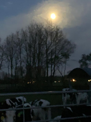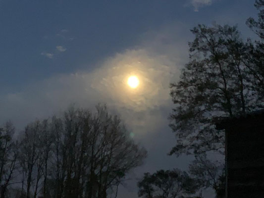 Als ich meine letzte "Bettmümpeli"-Runde mache, scheint der Vollmond extrem schön durch die einzelnen Wolken. Was für eine wunderbare, friedliche Stimmung.