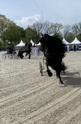 Am Morgen gehe ich mit Sandor etwas länger laufen, wir geniessen den Wald und das wunderbare Wetter. Der Wald ist nun auch hier schön grün und die Sonne scheint, und es ist noch nicht allzu heiss. Nach dem Laufen fahre ich direkt nach Lunteren, wo ein grosses Friesen-Pferde-Fest stattfindet. Es sind Zug- und Reitpferde-Prüfungen und davon habe ich zwar schon gelesen, aber war noch nie live dabei. Es war einerseits superschön, diese wunderbaren Friesen in Natura und in Bewegung zu bewundern, auf der anderen Seite waren die Prüfungen schon etwas sehr einseitig. Es ging vor allem darum, im Trab mit spektakulären Gängen zu imponieren, Schritt und Galopp waren nur ganz kurz in den Reitprüfungen gefragt. Und dies erst noch einfach gerade aus, also sehr einfach. Dafür musste alles spektakulär sein und viele Friesen zeigen wirklich einen extremen Trab. Ob das alles nur mit Talent und Geduld bei der Ausbildung zu erreichen ist ...? Ich fürchte eher nein und deshalb sehe ich die Prüfungen auch mit etwas skeptischem Auge. Trotzdem, die Friesen sind einfach imposant und die schönste Rasse der Welt.