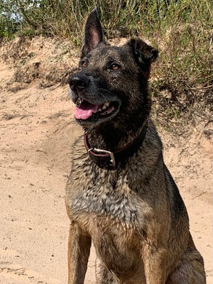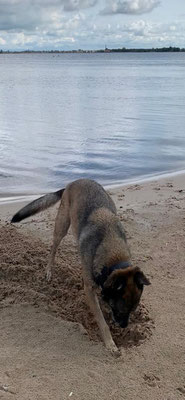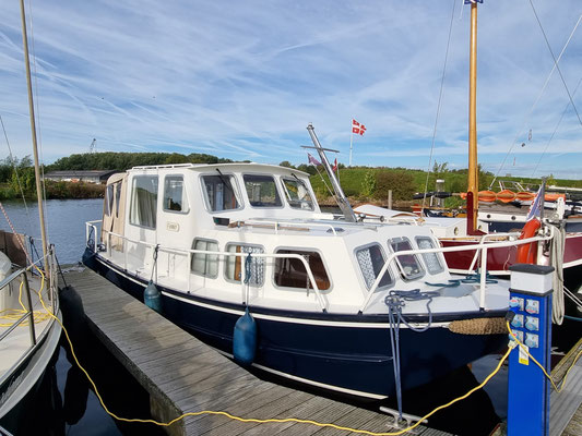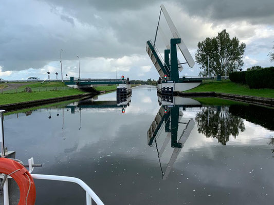 Zuerst geht es über das Tjeukenmeer und da es sehr windig und auch bewölkt ist, muss sich die Fanny ganz schön durch die Wellen kämpfen. Das macht sie gut und wir legen nach ein paar Stunden Fahrt einen Zwischenhalt auf einer Insel im Tjeukenmeer an. Eine wunderschöne Naturschutzinsel, die sogar einen Sandstrand bietet. Sandor freuts und er geniesst es, baden zu gehen und seine Stecken zu jagen. Nach diesem Hundeauslauf und Kaffee und Guetzli geht die Fahrt weiter, und nun beginnt auch die Sonne zu scheinen. In der Sonne ist es schon ziemlich angenehm warm und weiter geht die Fahrt im Kanal nach Ossenzijl, wo wir den Hafen für die Nacht aufsuchen. Hier machen wir erste Bekanntschaften mit den Brücken und einem weiteren seitwärts-einpark-Manöver.