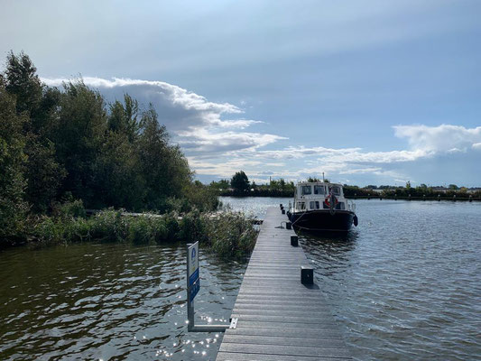 Der Hafen ist sehr gross und schliesst einen Camping sowie einen Freizeitpark mit ein, Dort befindet sich auch der Ausgangspunkt für Touren durch das bekannte Naturschutzgebiet de Weerribeen. Es hat auch ein grosses Informationszentrum dort, das wir allerdings aus Zeitgründen nicht besuchen. Wir besuchen das dazugehörige Restaurant, dies bedeutet jedoch einen recht langen Spaziergang, dies auch noch durch den Wald, was wir völlig unterschätzt haben.