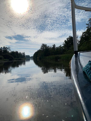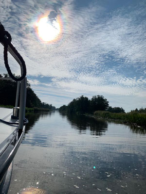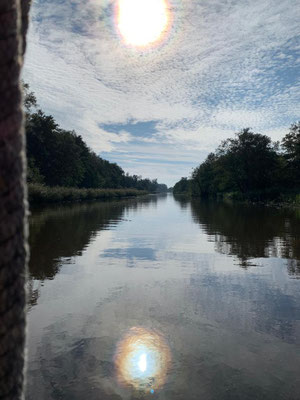 Für die Reise heute lasse ich mal die Bilder sprechen, die sind fast wie ein Gemälde von Monet geworden. Die Sonne hinter den dunstigen Wölkchen hat sich im Wasser gespiegelt und mit den dunklen Bäumen, die das Wasser säumten, ergab sich einfach ein wunderschönes Bild.